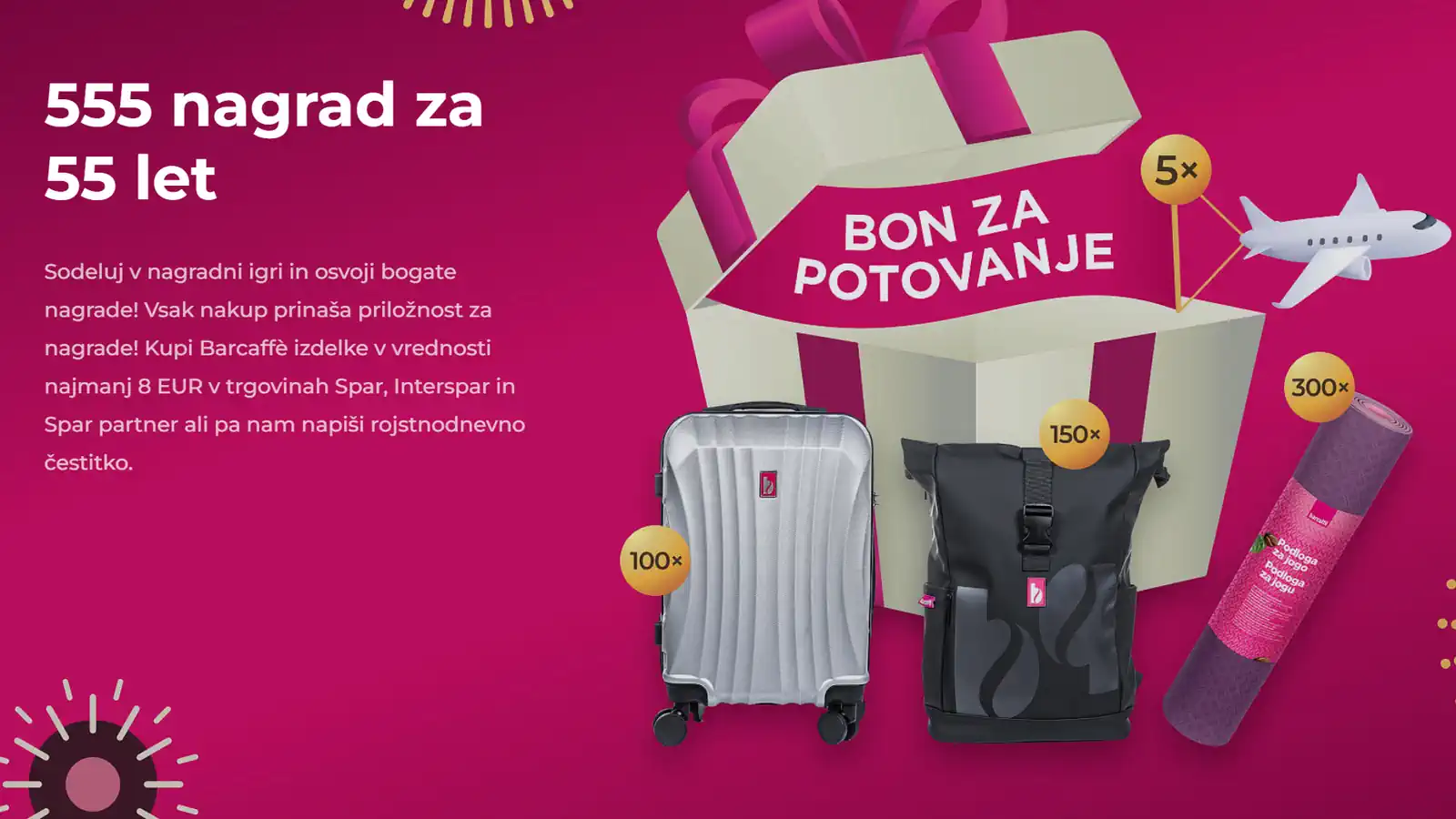 Barcaffe nagradna igra 2025: 555 nagrad za 55 let