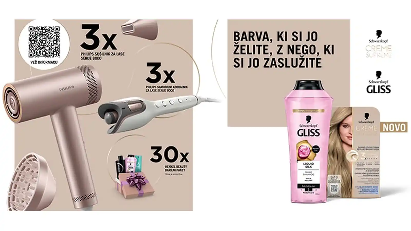 Nagradna igra Creme Supreme in Gliss traja od 1.8.2025. do 31.8.2025.