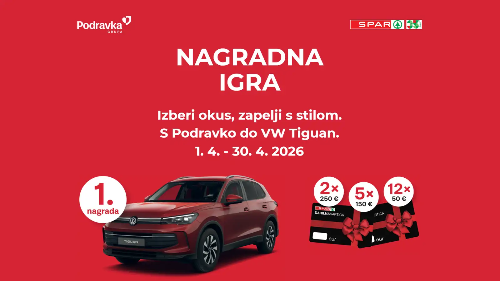 Podravka nagradna igra poteka od 1.4.2026 do vključno 30.4.2026. do 24.00 ure.