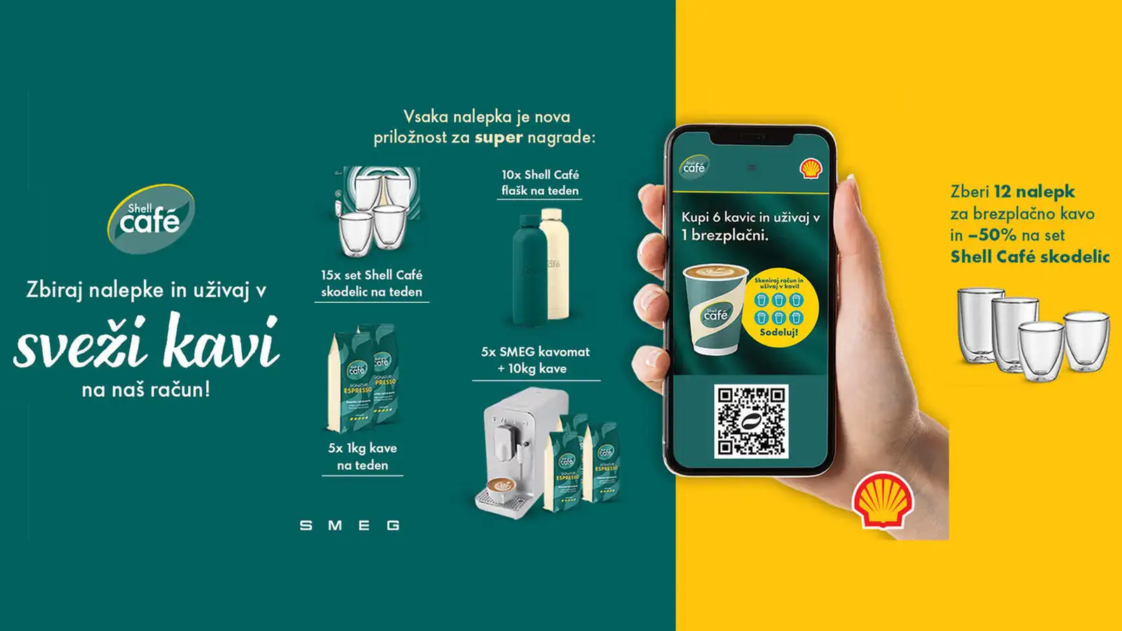 V obdobju trajanja promocijske akcije se izvede 12 tedenskih žrebanj in se vsak teden podeli 5 kompletov 2 Shell Café espresso skodelic, 5 kompletov 2 Shell Café cappuccino skodelic, 5 kompletov 2 Shell Café latte skodelic, 5 belih Shell Café flašk, 5 zelenih Shell Café flašk in 5 kav Shell Café 1 kg.