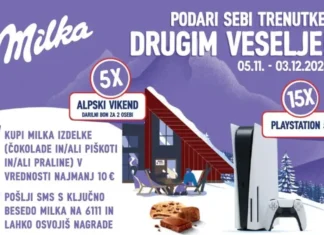 Trajanje:Milka nagradna igra traja od 5.11.2025. do 3.12.2025. do 23:59 ure v trgovinah Spar ali Interspar na območju Republike SlovenijeNagrade:5 x ALPSKI VIKEND za dve osebi, v vrednosti 550 EUR15 x PlayStation 5 v...