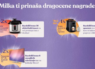TRAJANJE NAGRADNE IGREMilka nagradna igra poteka od 6.9.2021 (od 00:00:01) do 3.10.2021 (do 23:59:59).NAGRADETedenske nagrade:8 x televizor 4K Android Panasonic 50“ (po dve nagradi vsak teden)Vrednost: 441,98 EUR * 8 = 3.535,84 EUR (brez...