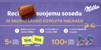 Trajanje:Milka nagradna igra poteka od 19.1.2026 do 28.2.2026 do 23:59 ure v trgovinah na območju Republike Slovenije.Nagrade:5 x 2 IKEA darilna kartica, v skupni...