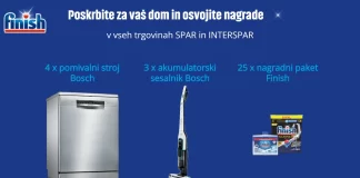 Trajanje:Finish nagradna igra poteka od 15.04.2023 do 14.06.2023 v vseh trgovinah SPAR in INTERSPARNagrade:4 x pomivalni stroj Bosch3 x akumulatorski sesalnik Bosch25 x nagradni...